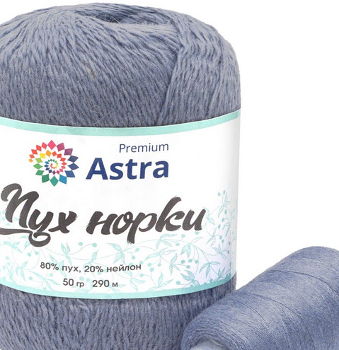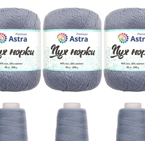 Пряжа Astra Premium 'Пух норки' (Mink yarn) 50гр 350м (80% пух, 20% нейлон) (нить 20гр в комплекте) (064 серо-голубой), col.064 серо-голубой