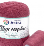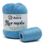 'Пух норки' (Mink yarn) от Astra Premium – пряжа для воздушных и согревающих вещей с выраженным ворсом. В процессе вязания нить не пушится, не спутывается, с ней удобно работать. Однако после влажной тепловой обработки ворс раскроется, изделие станет мягким и воздушным. Чтобы ворс лучше раскрылся, рекомендуем выбирать неплотную вязку. Чтобы вещи лучше сохраняли форму при ношении и после стирки, добавьте стабилизирующую нить из нейлона – она входит в комплект и совпадает с пряжей по цвету.