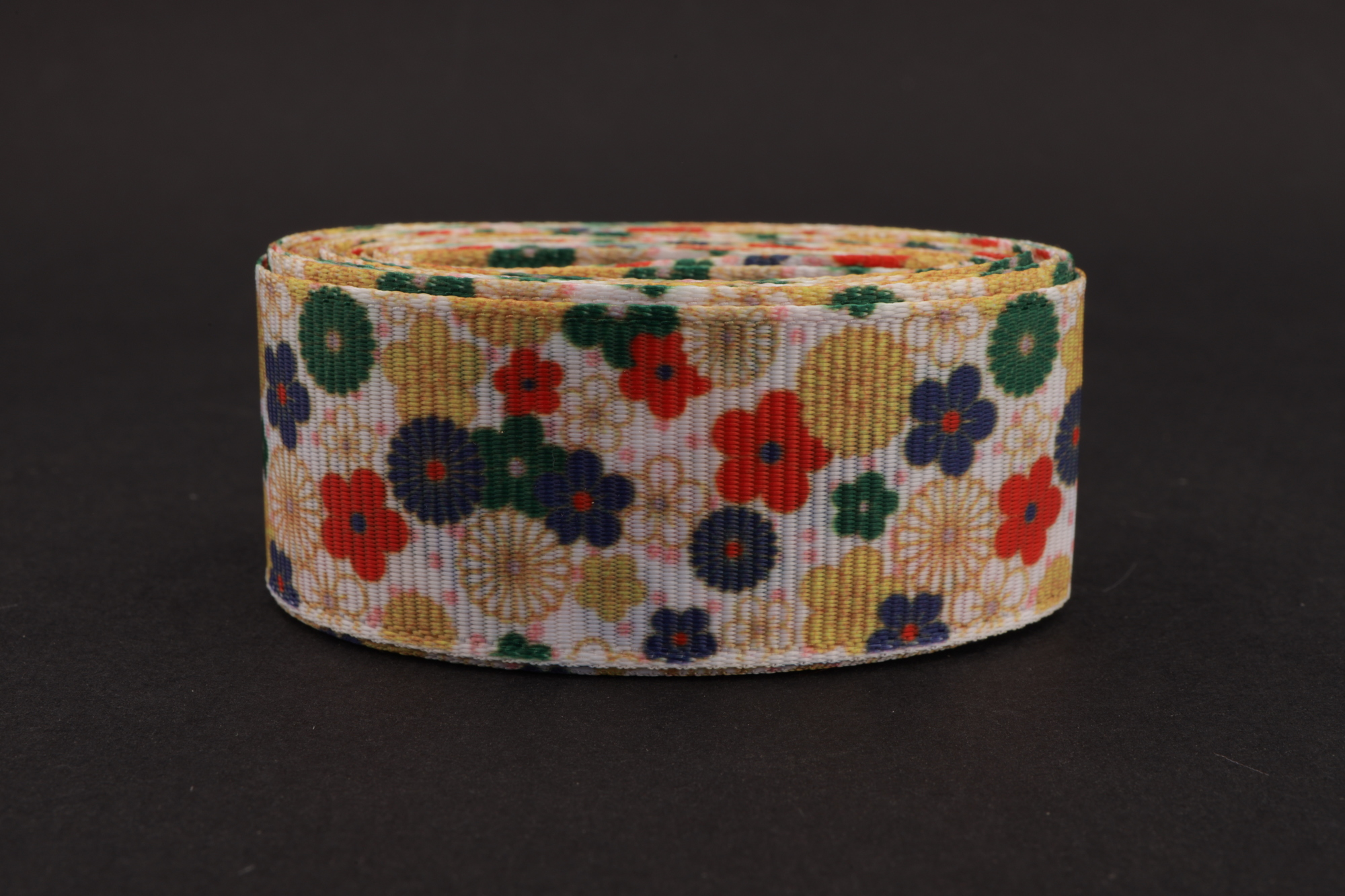 Купить репсовую двустороннюю ленту белого цвета с рисунком "Цветы"(мультики, 3D)  25мм * 6 ярдов оптом и в розницу по оптовым ценам с доставкой во все города России можно в нашем интернет-магазине.