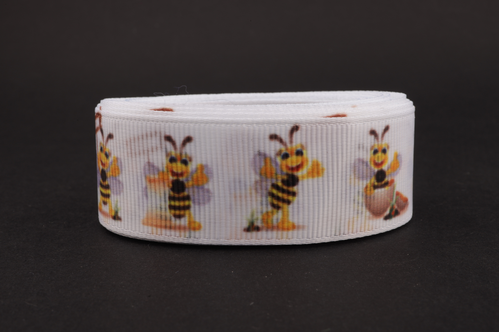 Купить репсовую двустороннюю ленту белого цвета с рисунком "Пчелка" (мультики, 3D) по оптовой цене вы всегда можете в нашем интернет-магазине "Лентофф".