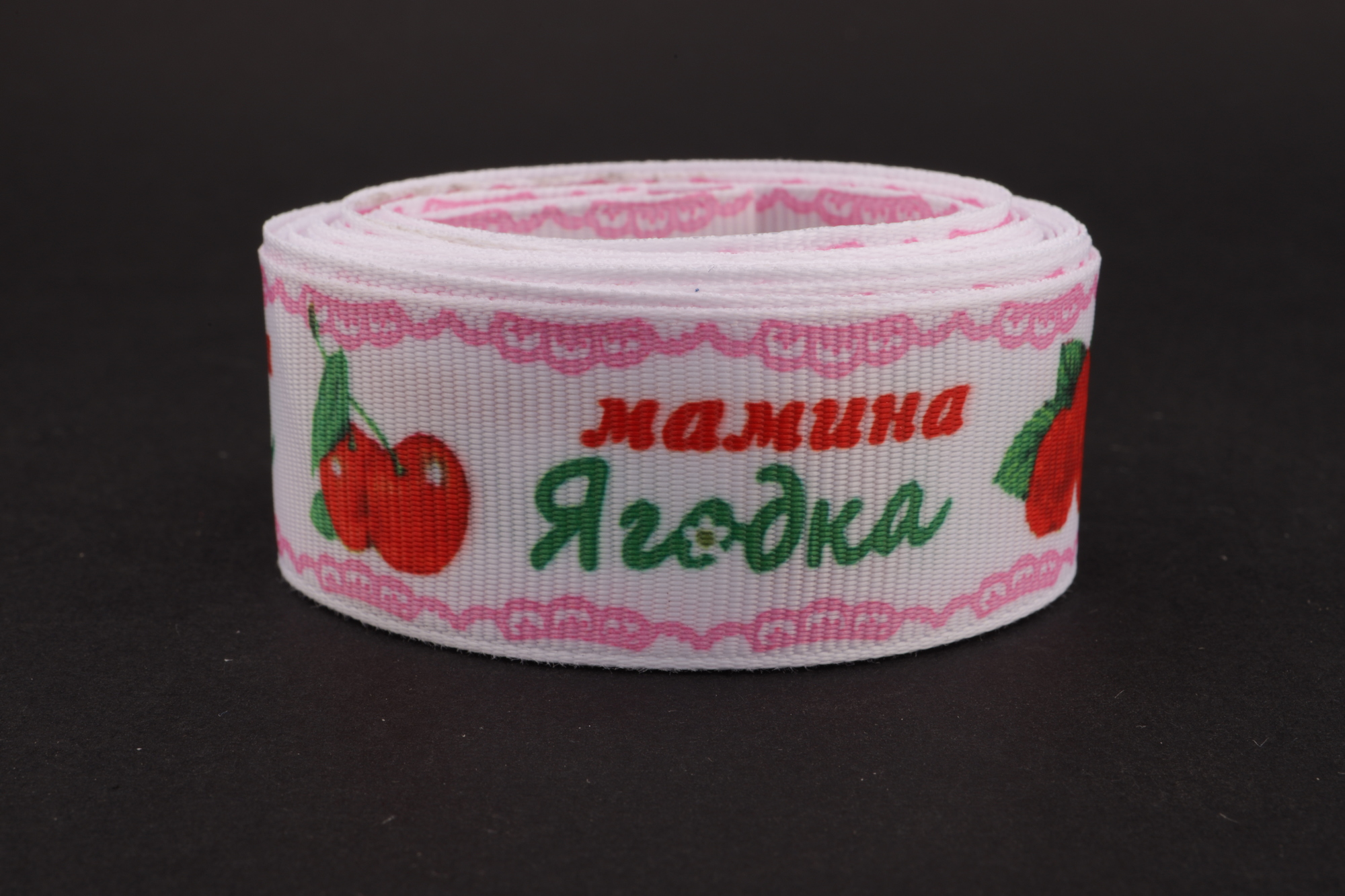 Купить репсовые ленты белого цвета с рисунком и надписью "Мамина ягодка" (мультики, 3D) в любое удобное для вас время всегда возможно в нашем интернет-магазине. Мы гарантируем качество, сервис высокого уровня и внимательность к любому вашему желанию.