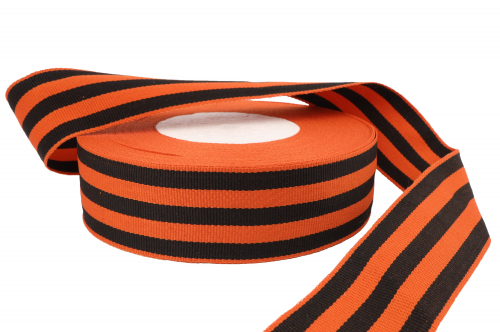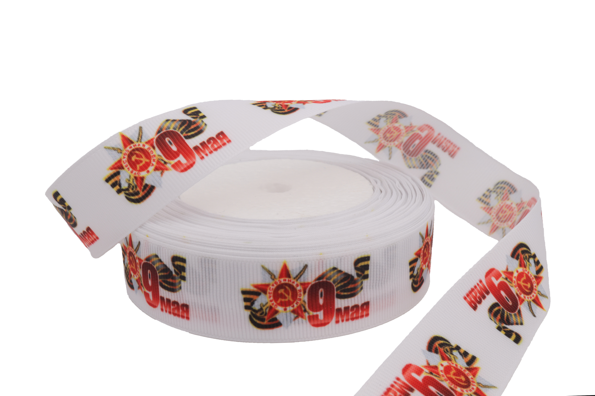 Купить репсовую ленту белого цвета с рисунком "9 МАЯ" по оптовой цене с гарантией качества в любое время можно в нашем интернет-магазине: lentoff.ru