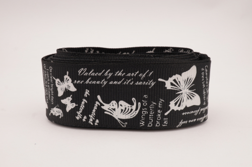 Репсовая лента с рисунком "Бабочки и надписи" 25мм * 6 ярдов