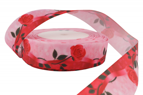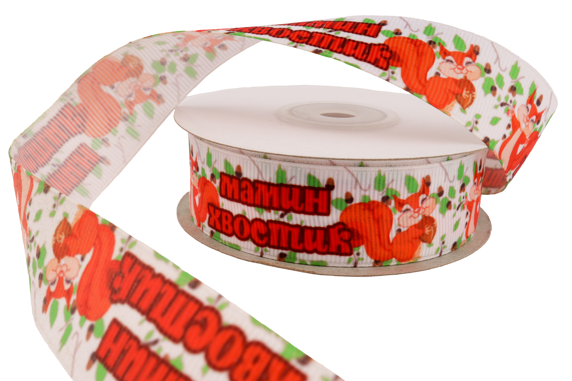 Репсовая лента с рисунком "Мамин хвостик" (белый), 25мм * 20 ярдов(+-1м)