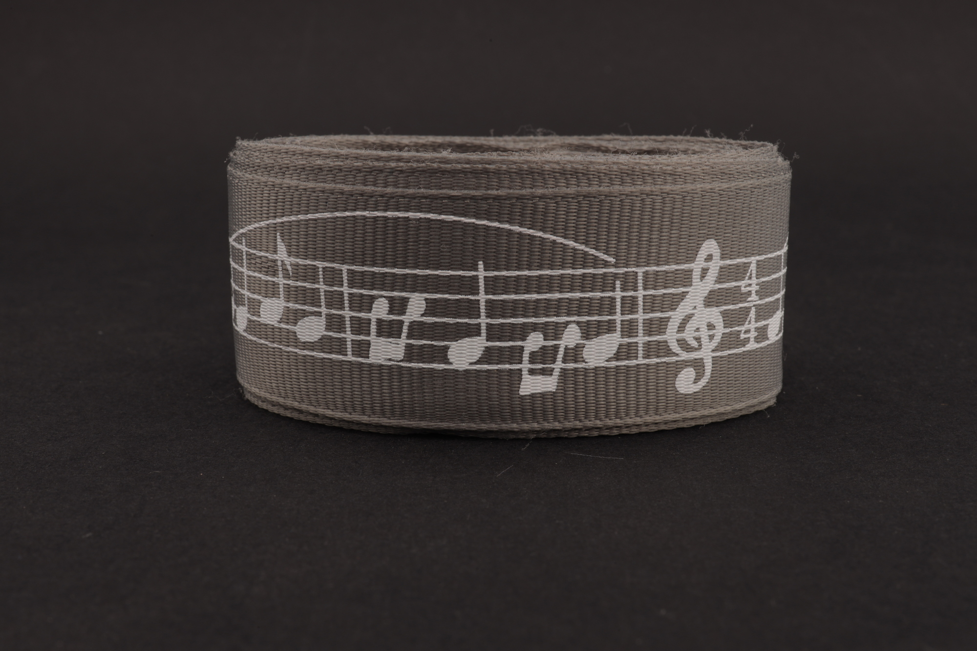 Репсовая лента (темно-серый) с рисунком "Мелодия" 25мм * 6 ярдов.