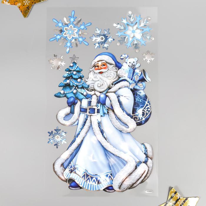 Наклейки- голограммы Room Decor «Дед Мороз с ёлочкой» 24×41 см