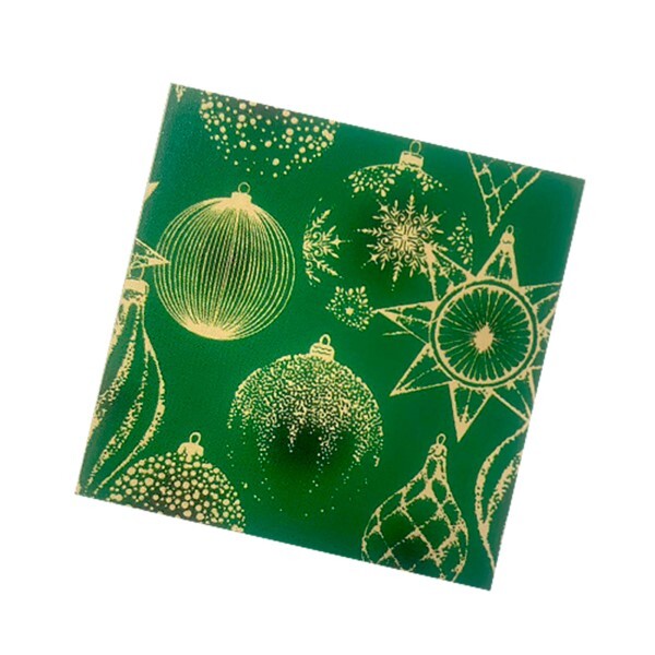 Салфетки новогодние бумажные 33*33 см Золотые украшения на зеленом 3 слоя 20 листов 902157