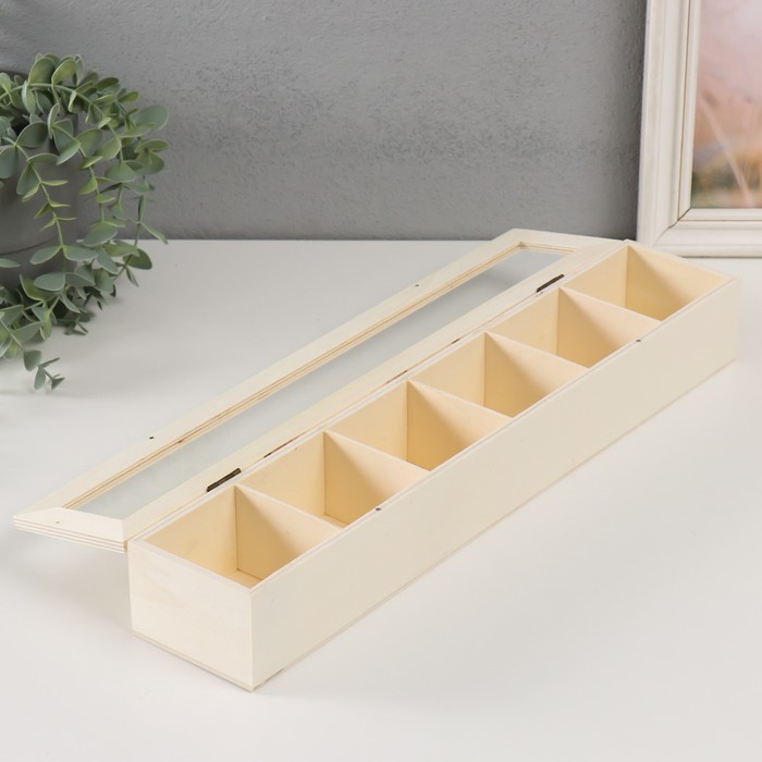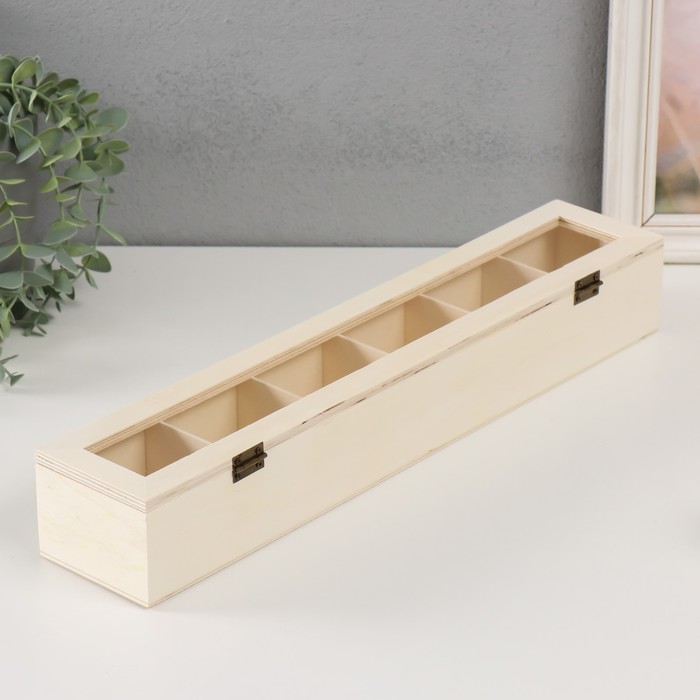Шкатулка для росписи дерево со стеклом и делениями «Прямоугольная», для творчества, декора, без замка, 45×8.5×6.5 см