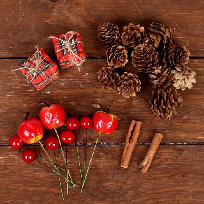 2. Сделайте букет из еловых веток и декорируйте его элементами из набора.