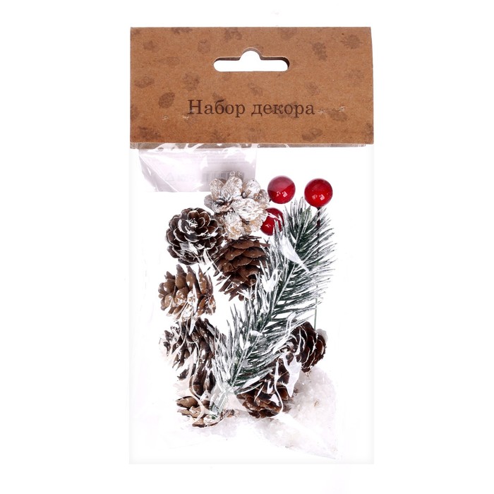 Набор декора «Морозные шишки» — это стильное решение для создания праздничной атмосферы в интерьере. Комплект включает элементы из пластика и природные материалы, такие как шишки, что придаёт украшению естественный и зимний вид. Идеально подходит для новогоднего декора в скандинавском стиле.