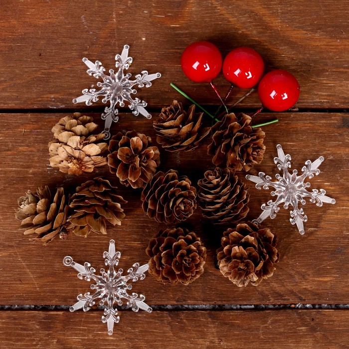 Набор новогоднего декора «Шишки со снежинками» — это стильное и уютное украшение для вашего дома. Шишка выполнена из природных материалов, что делает её прочной и долговечной. Декор добавит праздничную атмосферу и станет отличным акцентом в вашем новогоднем декоре.