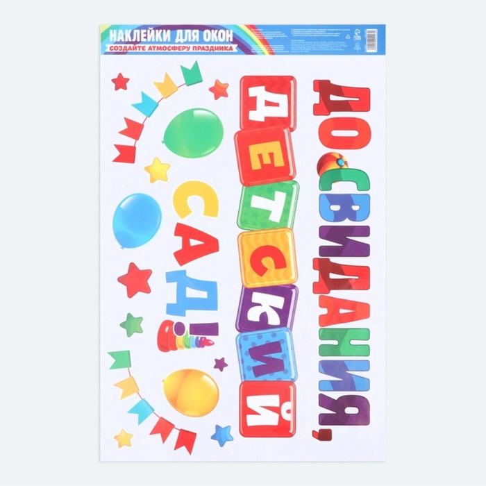 Наклейки витражные на Выпускной «До свидания, детский сад», 33×50.5 см