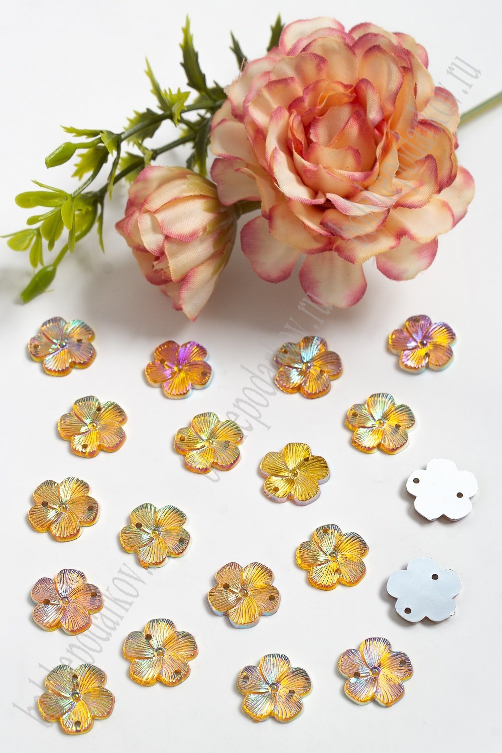 Стразы "Цветок" 15 мм (100 шт) SF-804, золото радужный