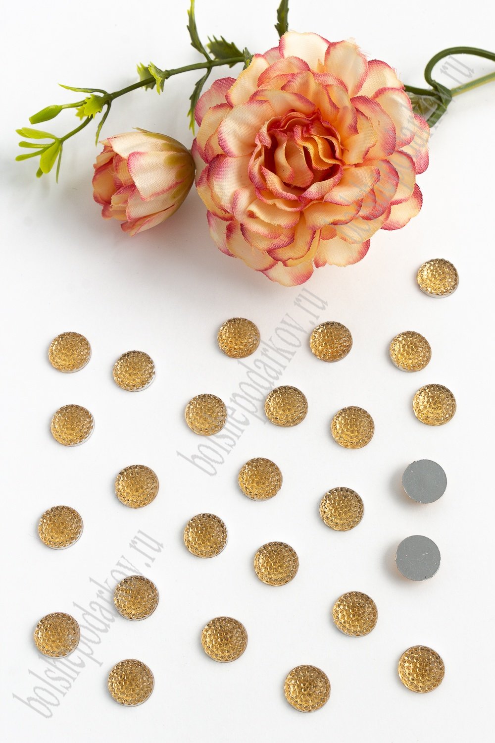 Стразы круглые 10 мм (200 шт) SF-1604, светлое золото