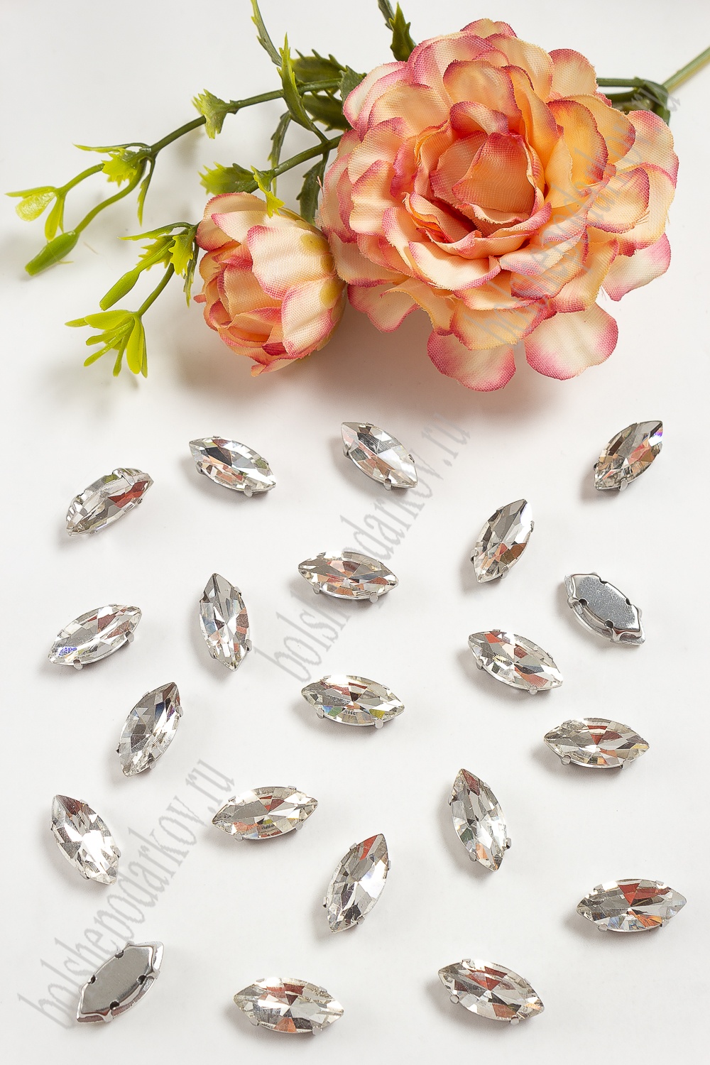 Стразы пришивные 15 мм "Овал заостренный" (20 шт) SF-3713, серебро №1