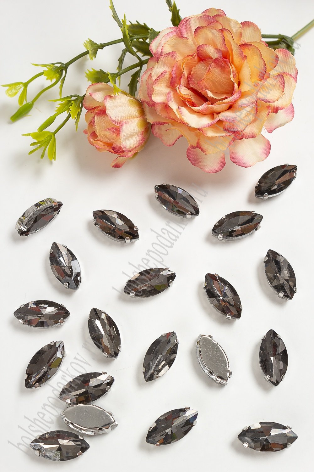 Стразы пришивные 18 мм "Овал заостренный" (20 шт) SF-3712, графитовый №2