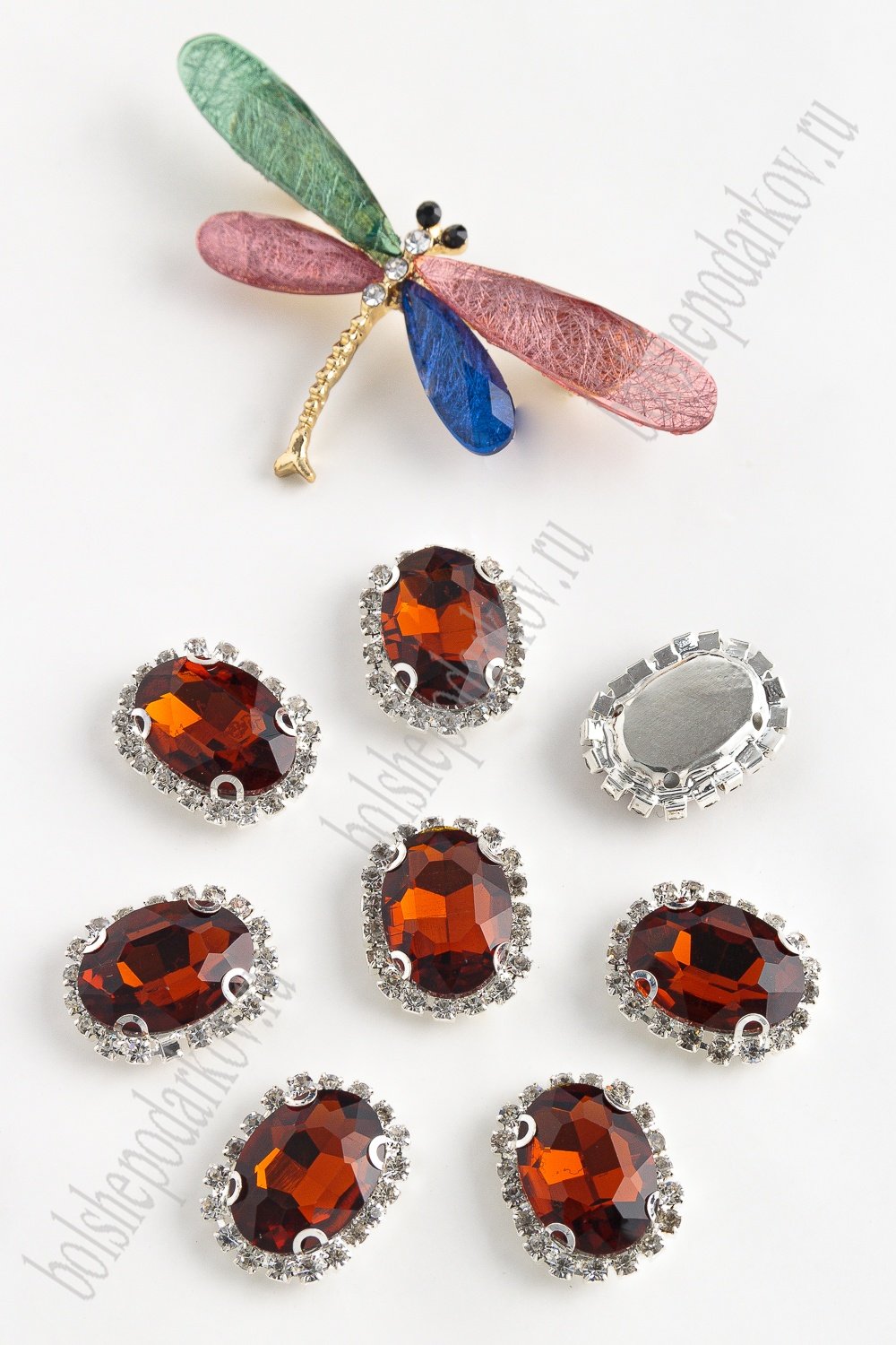 Стразы пришивные в серебряной оправе 17*22 мм "Овал" (5 шт) SF-1425, темно-коричневый №4