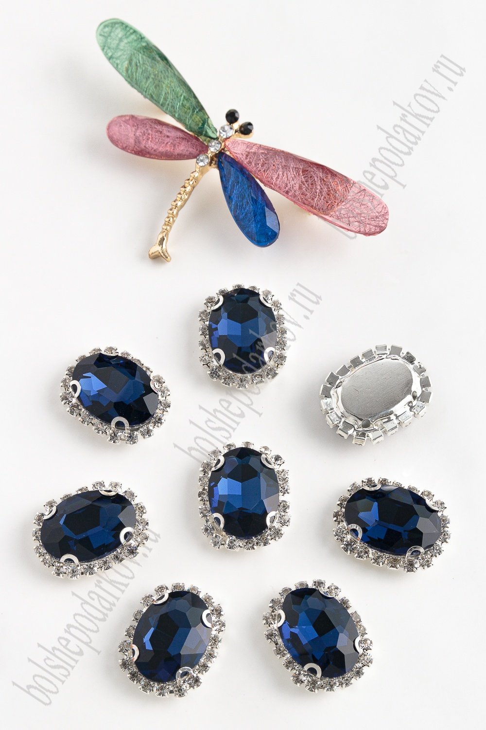 Стразы пришивные в серебряной оправе 17*22 мм "Овал" (5 шт) SF-1425, темно-синий №11
