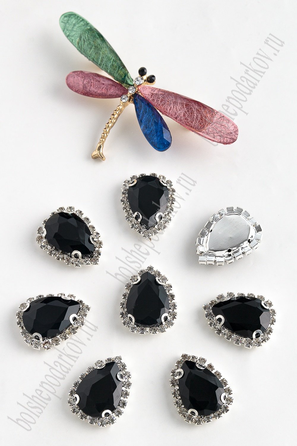 Стразы пришивные в серебряной оправе 17*23 мм "Капля" (5 шт) SF-2052, черный №16