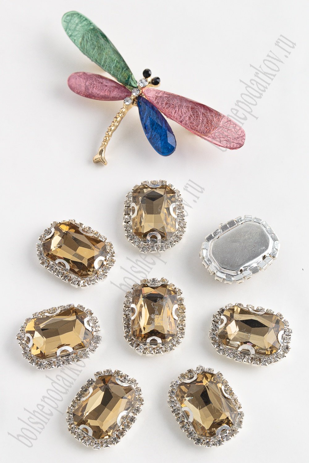 Стразы пришивные в серебряной оправе 18*24 мм "Прямоугольник" (5 шт) SF-2050, светлое золото №3