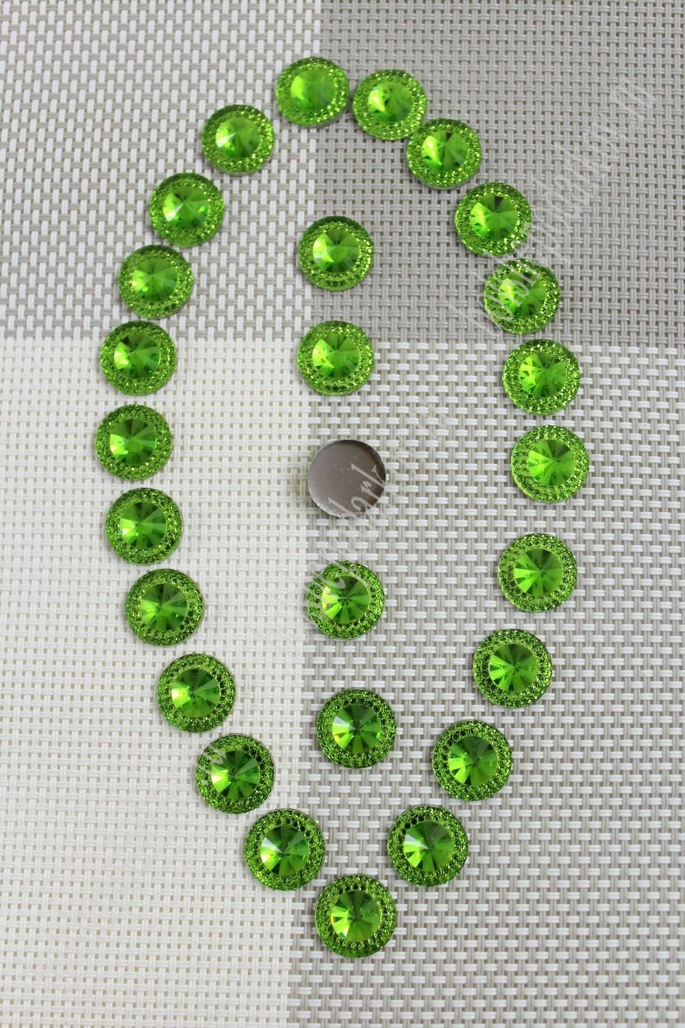 Стразы с граненной окантовкой 16 мм (100 шт) SF-1159, салатовый
