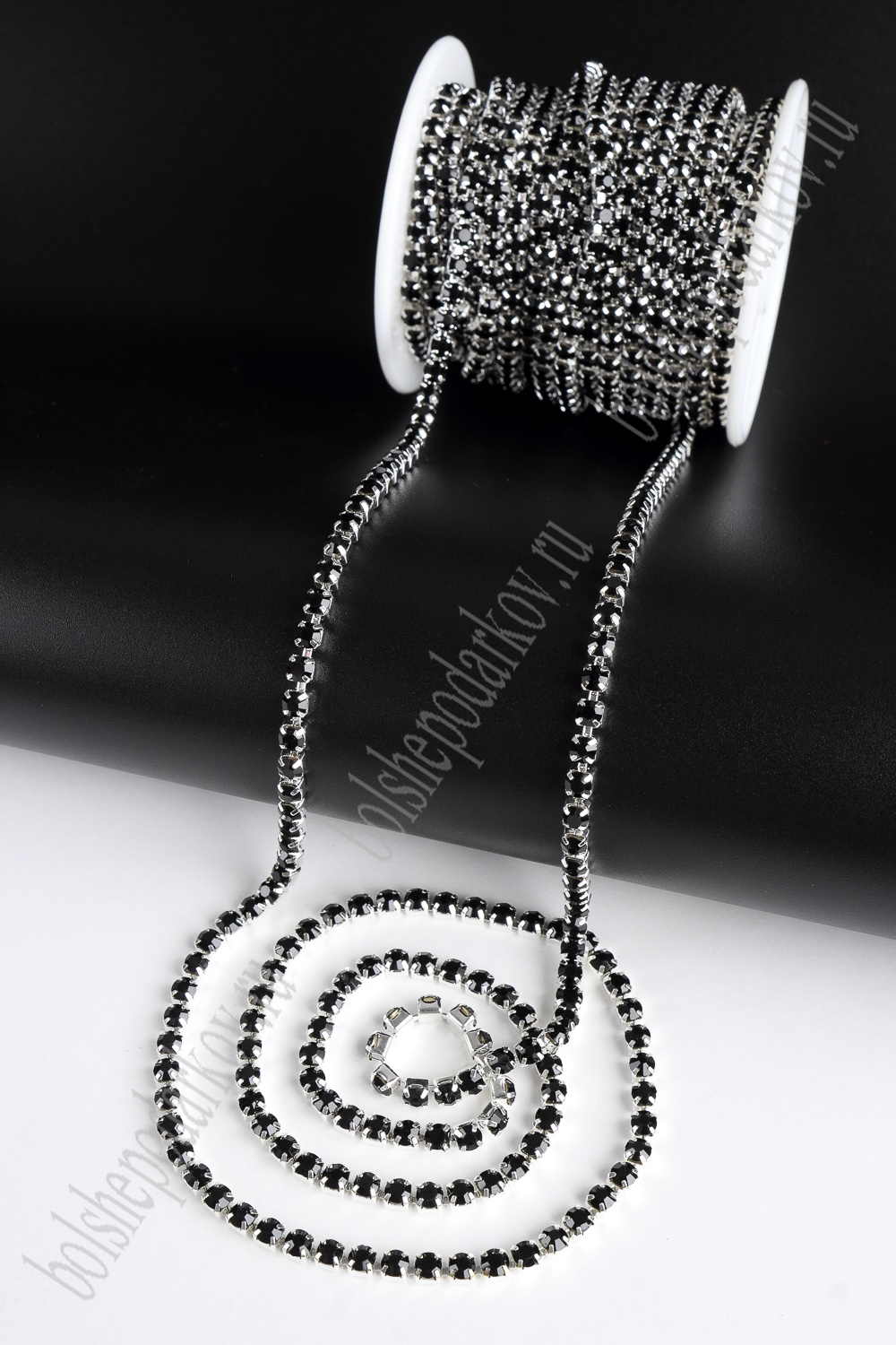 Стразы в бобине SS16М (4 мм*10 ярд) SF-2055, черный в серебряной оправе