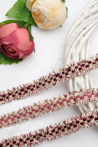 Тесьма отделочная 2 см*5 ярд "Бахрома с бархатом" (SF-2463) бордовый