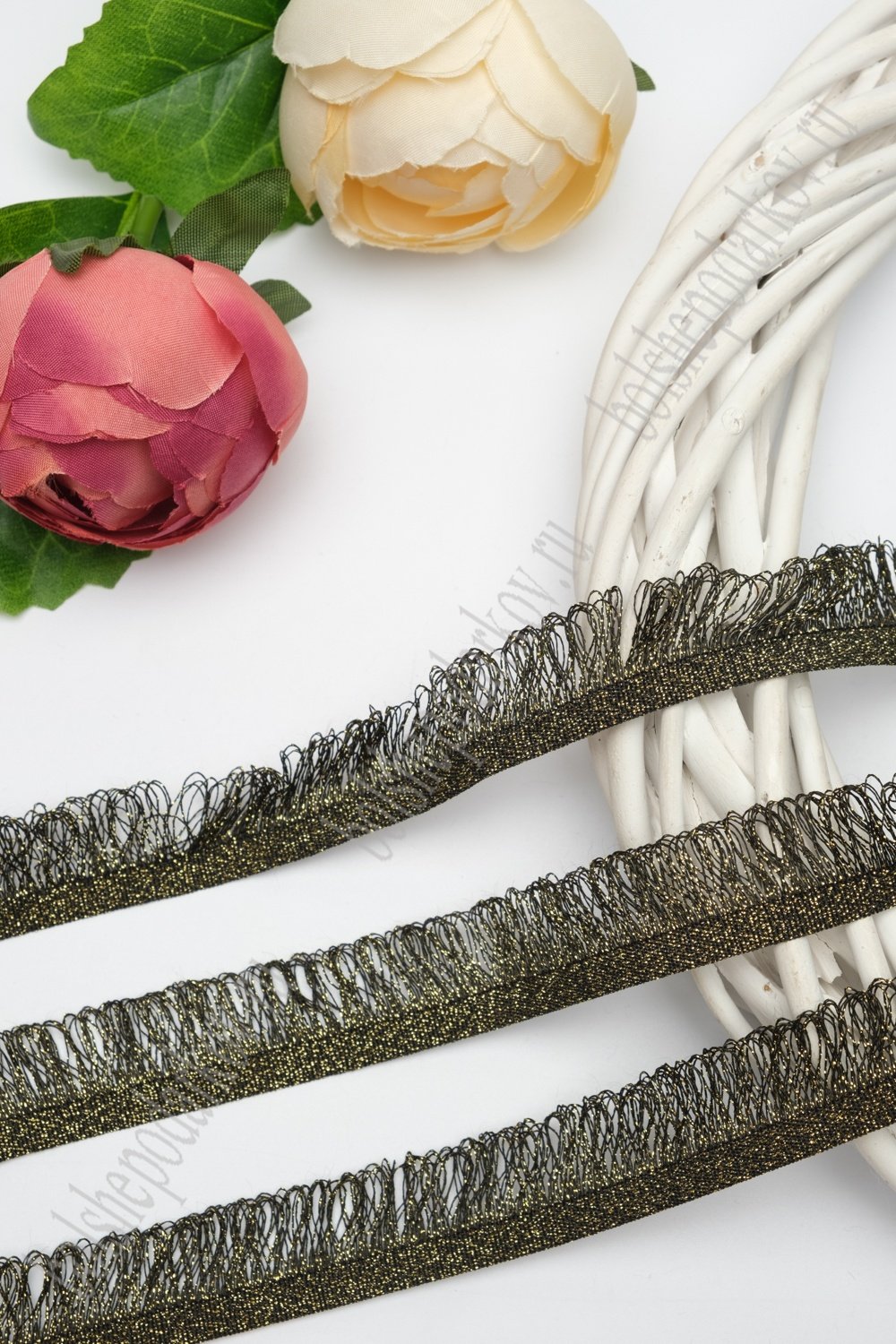 Тесьма отделочная 2 см*5 ярд "Бахрома" (SF-2462) черный/золото