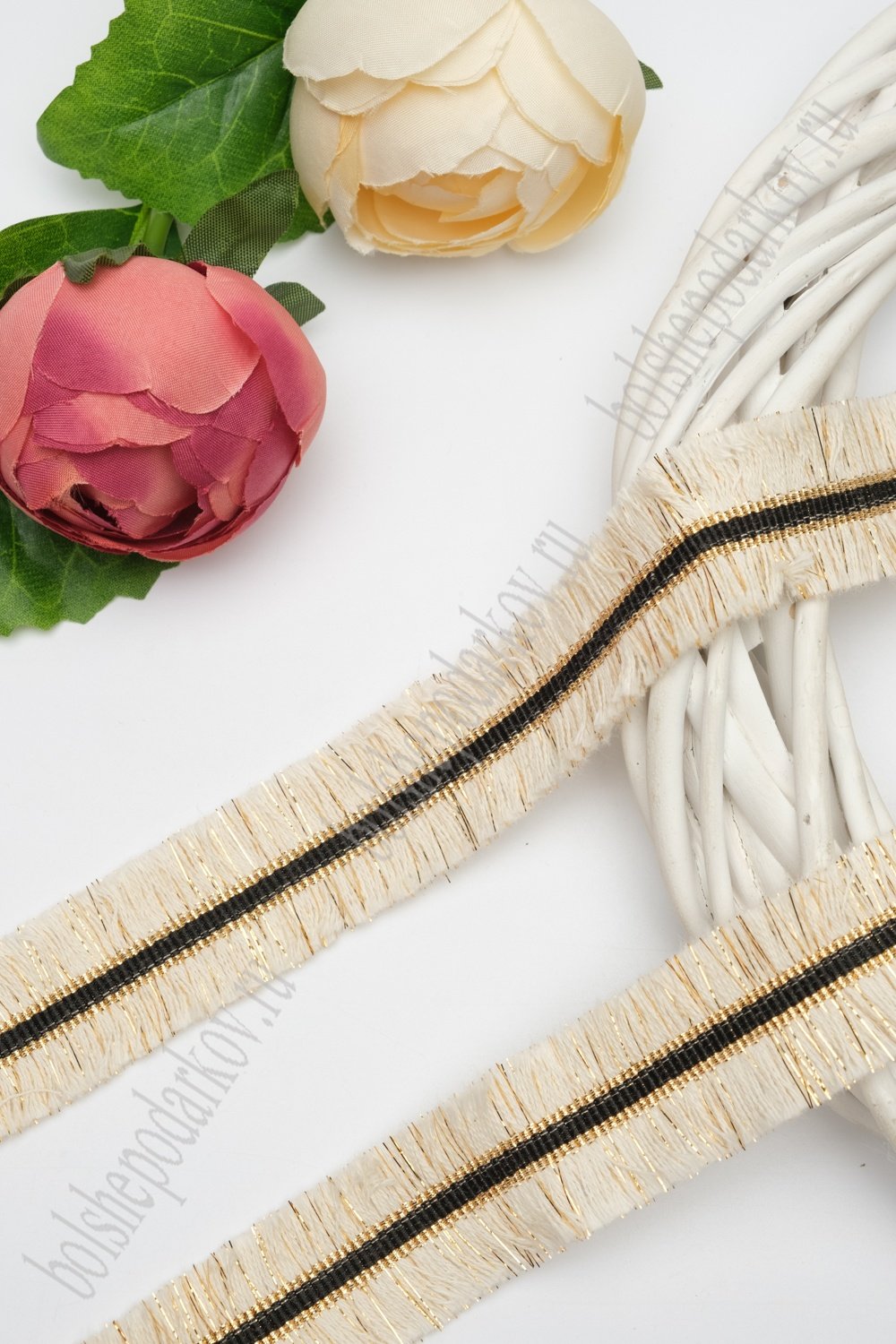 Тесьма отделочная 3 см*5 ярд "Бахрома с люрексом" (SF-2461) бежевый
