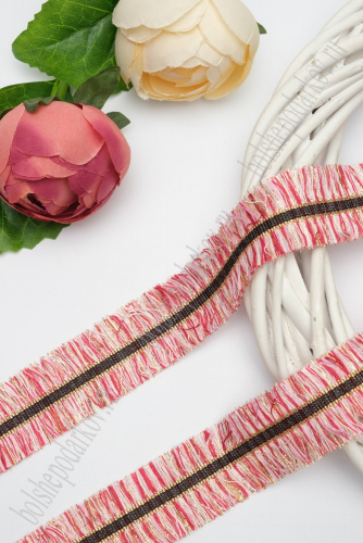 Тесьма отделочная 3 см*5 ярд "Бахрома с люрексом" (SF-2461) красный/белый