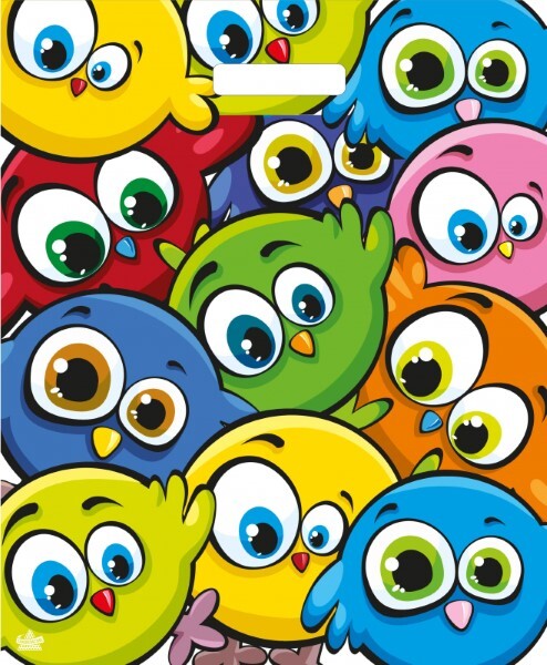 Полиэтиленовый пакет ПВД с прорубной ручкой 60 мкм 38х45 см Забавные птички 50 шт