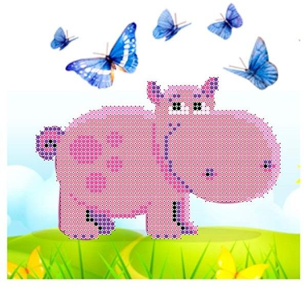Ткань с нанесенным рисунком и схемой для вышивания бисером "Бегемотик" 20*20 см