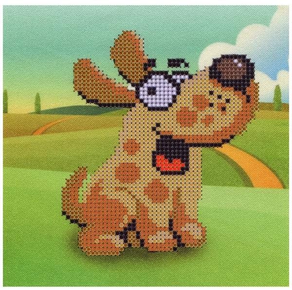 Ткань с нанесенным рисунком и схемой для вышивания бисером "Счастливый пес" 20*20 см
