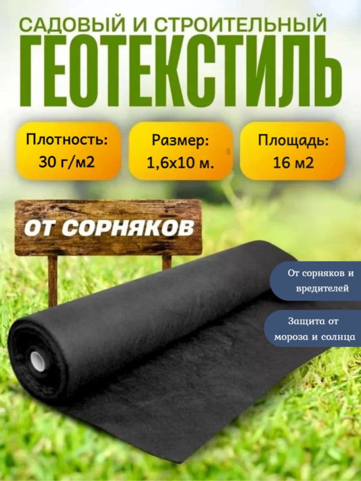 Спанбонд черный, укрывной материал 1,6х10 м (30 гр/м2)