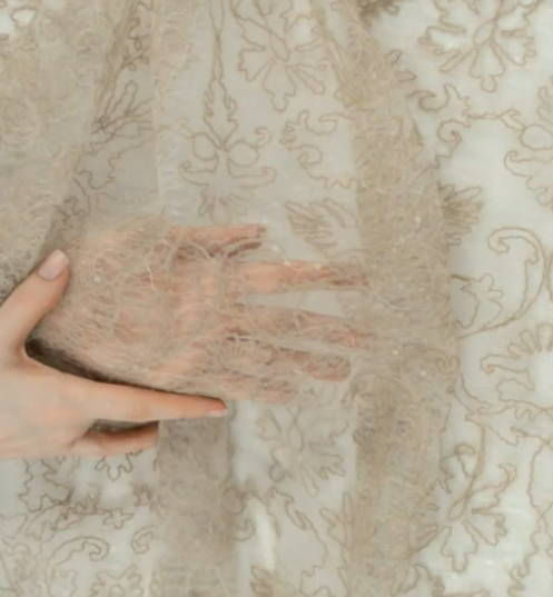 Кружевное полотно с вышивкой и пайеткой "Кливия", серо-бежевый