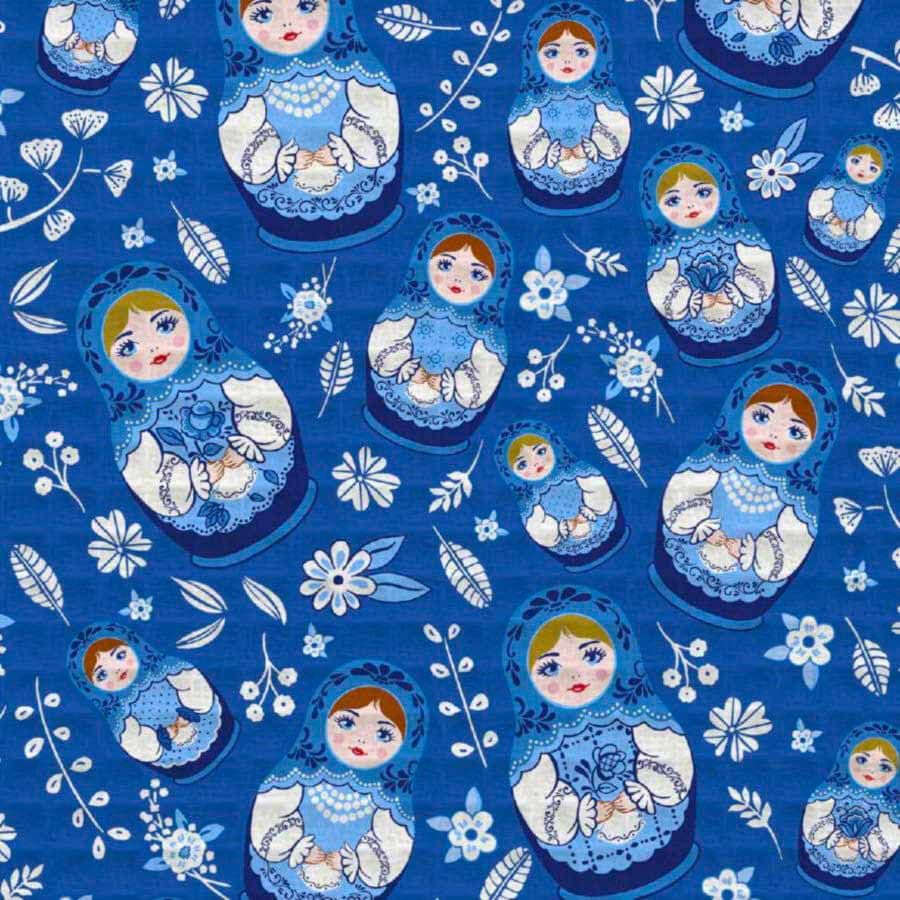 Ткань вафельное полотно 50 см Матрешка Гжель арт. 62164-1