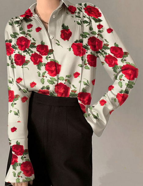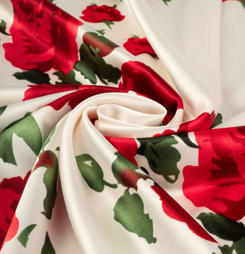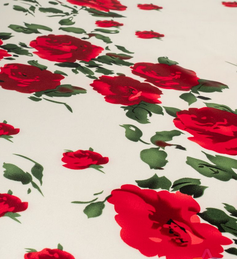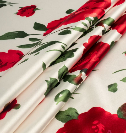 НОВИНКА Атлас стрейч принт, белый / красный / зеленый