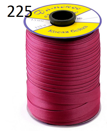 фиолетовый,фуксия Косая бейка атлас ш.1,5см (в упаковке 132 м.)