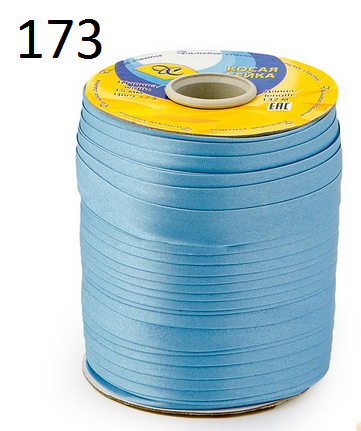 синий, голубой Косая бейка атлас ш.1,5см (в упаковке 132 м.)