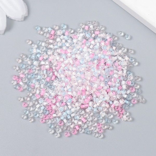 Бисер стекло 12/0 Прозрачный. Цветная серединка. Розовый и голубой, 10 гр