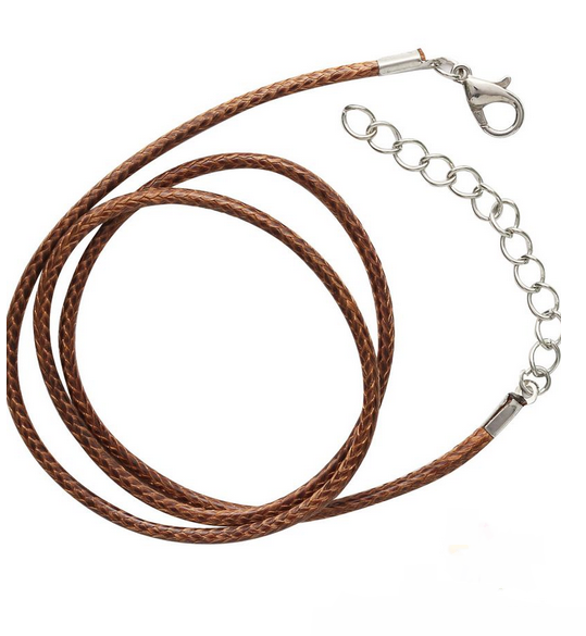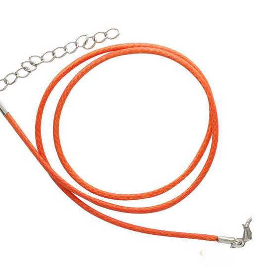 Текстильный шнур, обработанный воском, с металлическим замком-карабином. Прочный и жесткий, основа для создания различных авторских украшений на шею – бус, колье.