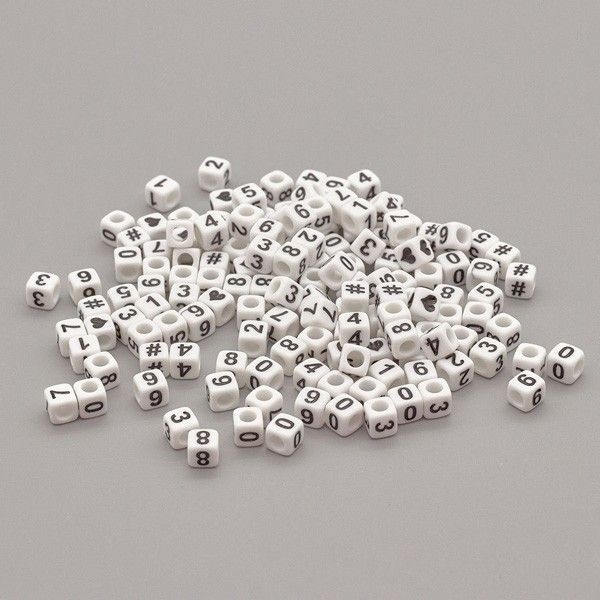 Бусины пластиковые, с цифрами, белые, куб, 6*6мм, 150шт/упак, Астра