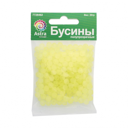 Бусины полупрозрачные 2006 матовые, 6мм, 20гр (170+/-10шт) Астра, 026 желтый