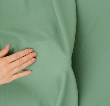 Легкая, но вместе с тем прочная гладкокрашенная ткань с рельефной поверхностью. Материал с льняной структурой и эффектом крэш. Приятная и мягкая на ощупь, обладает матовым блеском и образует на изделиях красивые складки.