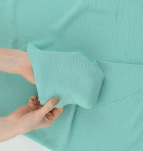 Легкая, но вместе с тем прочная гладкокрашенная ткань с рельефной поверхностью. Материал с льняной структурой и эффектом крэш. Приятная и мягкая на ощупь, обладает матовым блеском и образует на изделиях красивые складки.