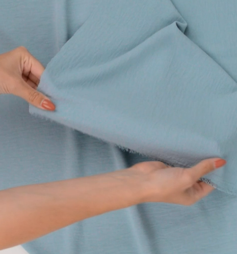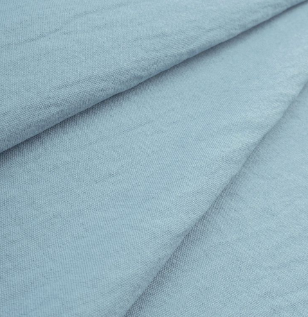 Легкая, но вместе с тем прочная гладкокрашенная ткань с рельефной поверхностью. Материал с льняной структурой и эффектом крэш. Приятная и мягкая на ощупь, обладает матовым блеском и образует на изделиях красивые складки.