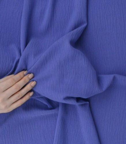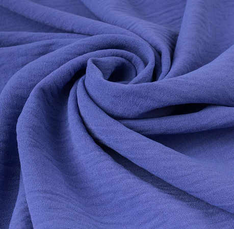 Легкая, но вместе с тем прочная гладкокрашенная ткань с рельефной поверхностью. Материал с льняной структурой и эффектом крэш. Приятная и мягкая на ощупь, обладает матовым блеском и образует на изделиях красивые складки.