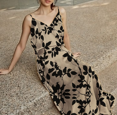 Дубайский шелк SPH принт, бежевый / черный