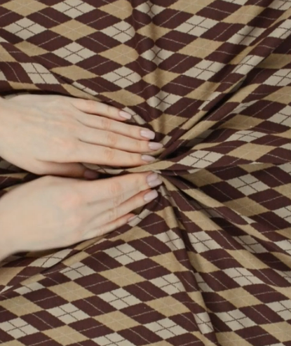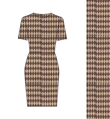 Трикотажное полотно средней плотности. Лицевая сторона ровная, гладкая. Изнаночная - мягкая, матовая, бархатистая. На поверхности полотна расположен принт. Материал эластичен, а вискоза, входящая в состав ткани, придает полотну дополнительную мягкость, делая его приятным на ощупь, не электризуемым. Трикотаж уютный, приятный к телу и удобный в носке. Платья, юбки, жакеты из джерси прекрасно смотрятся на фигуре.
