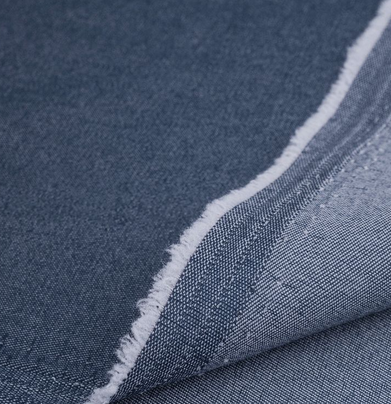 Тонкая, легкая джинсовая ткань с содержанием вискозы, придающей особую мягкость материалу. Имеет хорошую способность впитывать и отводить влагу. Эластичная, обеспечивает безупречную посадку по фигуре и комфорт в носке. Изделия из джинсовой ткани с добавлением полиэстера в составе требуют менее аккуратного ухода, они меньше мнутся и легче стираются. Предназначена для пошива летних брюк, юбок и платьев, рубашек. Рекомендуется перед шитьем провести противоусадочную обработку ткани, так как она может дать усадку около 7% по длине и ширине полотна.